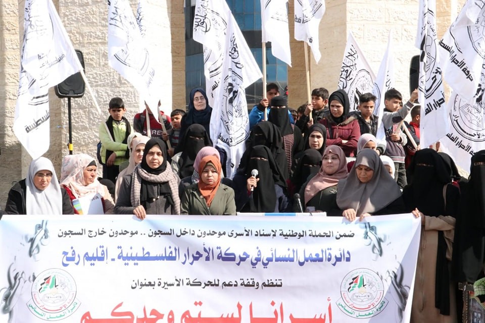 حركة الأحرار - دائرة العمل النسائي إقليم رفح  تنظم وقفة جماهيرية دعماً واسناداً للأسرى والأسيرات في سجون الاحتلال الصهيوني, بعنوان (أسرانا لستم وحدكم)