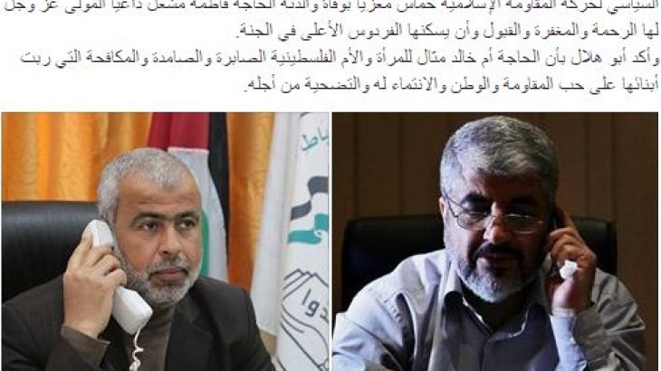 أبو هلال يهاتف مشعل معزيا بوفاة والدته