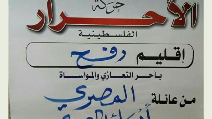 قدم مجلس المنطقة الغربي إقليم رفح ممثلا بالأخ محمود صالح والأخ مصطفي أبو السعود والأخ محمود عدوان والأخ أحمد خليفة والأخ سامي عدوان واجب العزاء لآل أبو الروس بوفاة فقيدهم أيمن أبو الروس وآل المصري بوفاة فقيدهم بو وائل المصري _ الخميس ٢١١٢٠١٧م