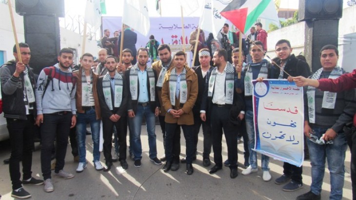 قيادة كتلة الأحرار الطلابية في الجامعات تشارك في المسيرة الغاضبة رفضاً لقرار الإدارة الأمريكية و التآمر الأمريكي على القدس المحتلة التي نظمها الكتلة الإسلامية بمشاركة الأطر الطلابية ، وذلك اليوم الأحد الموافق 10/12/2017م من مفترق الجامعات باتجاه مبنى الأنروا .