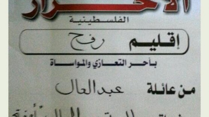 قدم مجلس منطقة الوسط إقليم رفح ممثلا بالأخ وائل قشطه والأخ رمزي النواحجة والأخ محمد لافي والأخ محمد ابو حرب والأخ احمد ابو جزر والأخ محمد الهسي واجب العزاء لآل عبد العال بوفاة فقيدتهم سالمة عبد العال " أم فتحي " _ السبت ٢٠١٢٠١٨م