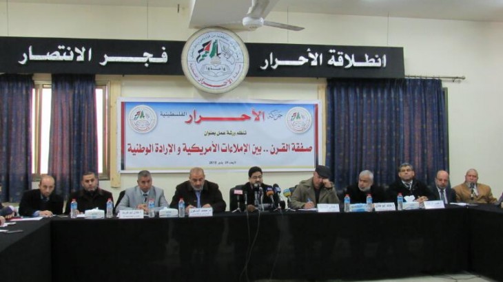 قيادة حركة الأحرار إقليم رفح تشارك في ورشة العمل الدي نظمتها حركة الأحرار في مقرها الرئيسي في غزة تحت عنوان : صفقة القرن ... بين الإملاءات الأمريكية والإرادة الوطنية والذي كانت تضم نخبة من قيادات العمل الوطني والإسلامي _ الأربعاء ٢٤١٢٠١٨م