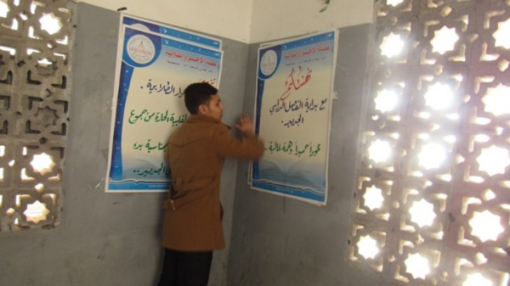 كتلة الأحرار الطلابية في جامعة الأقصى تضع بوسترات تهنئة