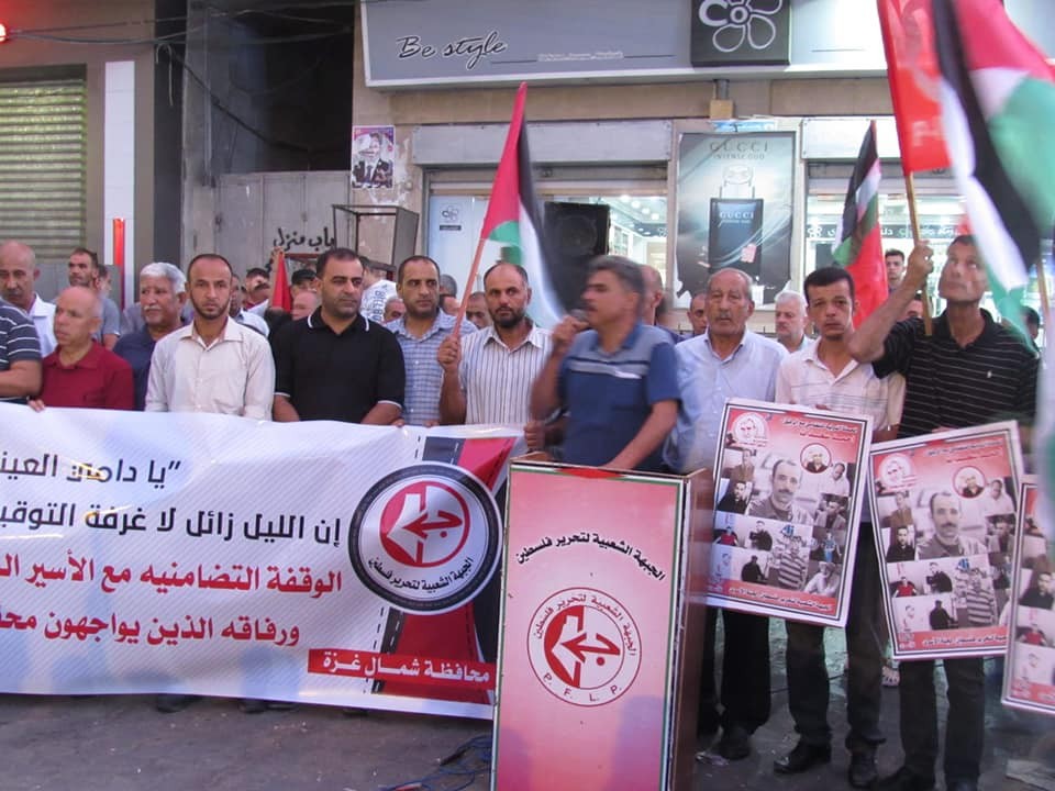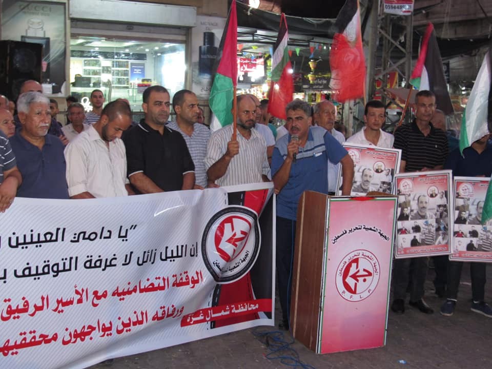 جانب من مشاركة حركة الأحرار الفلسطينية إقليم الشمال في الوقفة الجماهيرية التي نظمتها ال ج ب ه ة ال ش ع ب ي ة ل ت ح ري ر فلسطين تضامنا مع الأسير البطل سامر عربيد بمخيم جباليا