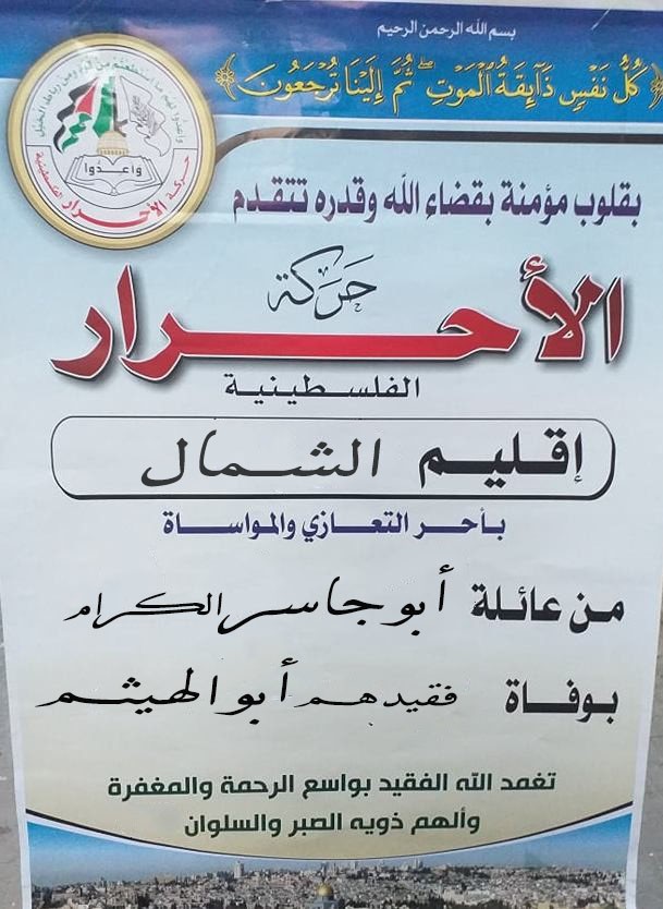قيادة مجلس المناطق التنظيمية الشرقي يقدم واجب العزاء لال ابو جاسر بوفاة فقيدهم أبو الهيثم