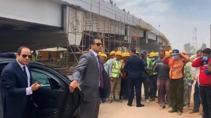 تداول نشطاء على مواقع التواصل الاجتماعي فيديو للرئيس المصري عبد الفتاح السيسي، لحظة مروره على أحد الأماكن المكتظة بالعمال دون وقايتهم من فيروس كورونا.