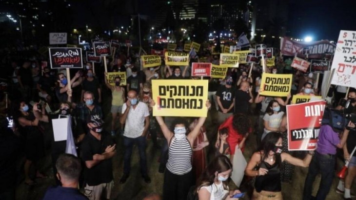 تجددت المظاهرات في الكيان الإسرائيلي، الليلة الماضية، احتجاجا على التداعيات الاقتصادية للأزمة الناجمة عن جائحة فيروس كورونا المستجد، وعلى إدارة حكومة بنيامين نتنياهو للأزمة.