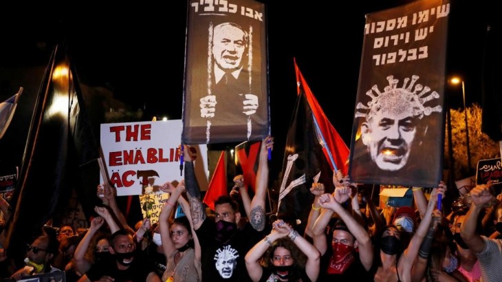 واصل آلاف الإسرائيليين الليلة، احتجاجهم أمام مقر الإقامة الرسمي لرئيس حكومة الاحتلال الإسرائيلي بنيامين نتنياهو في مدينة القدس المحتلة، قبل الانطلاق في تظاهرة إلى مقر "الكنيست"، وسط انتشار مكثف من الشرطة الإسرائيلية، التي اعتقلت 6 متظاهرين أثناء الفعالية.