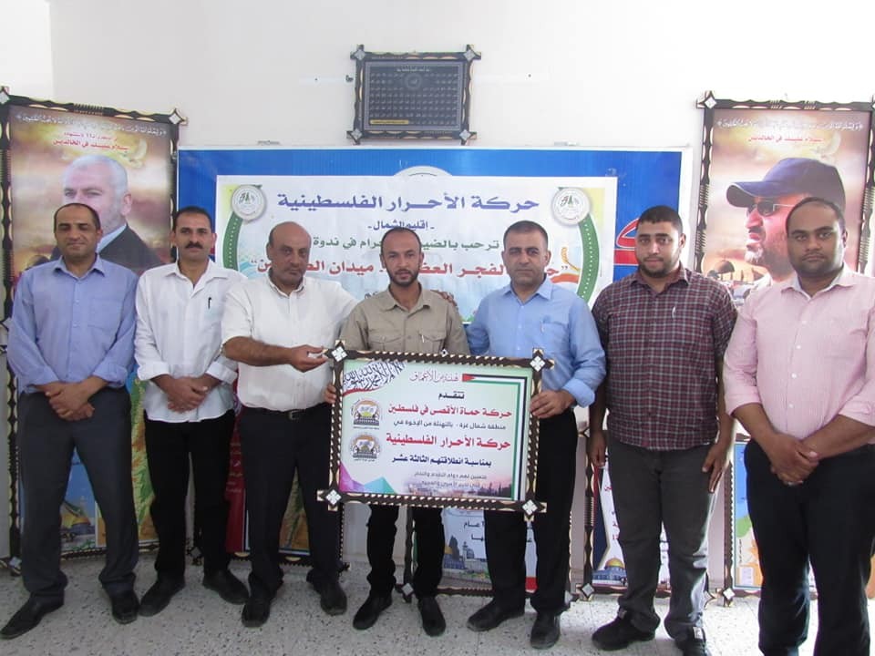حركة الأحرار الفلسطينية إقليم الشمال تستقبل وفد من حركة حم اة الأق صى خلال زيارة لهم لتهنئة قيادة الحركة بالانطلاقة ال ١٣