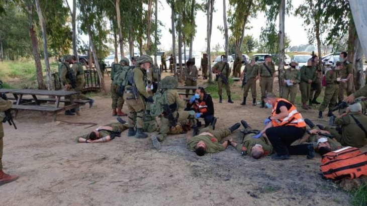 أجرى جيش الاحتلال اليوم الأحد، مناورة تحاكي التعامل مع إصابات جماعية في غلاف غزة.