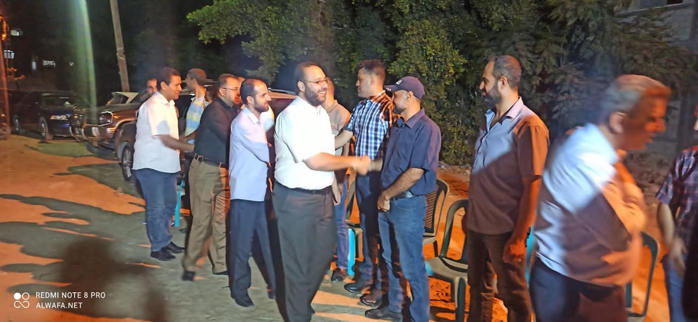 الأمين العام لحركة الأحرار الفلسطينية أ. خالدأبوهلال وقيادة إقليم الشمال يشاركون آل الشريف أفراحهم حيث قدم الوفد التهنئة للقيادي في حركة حم اس أ. ابو بلال الشريف التهنئة بزفاف نجله د. بلال