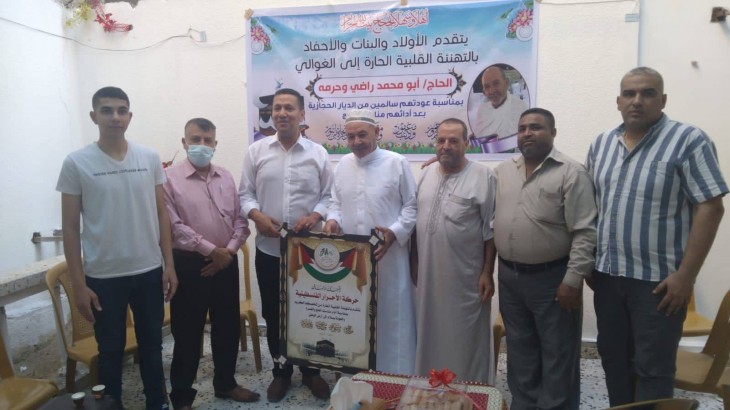 حركة الأحرار الفلسطينية قيادة إقليم غرب غزة وفي مقدمتهم أمين سر الإقليم أ. محمد عاشور (ابو طارق) تنظم سلسلة زيارات ميدانية لتهنئة حجاج بيت الله الحرام لعودتهم سالمين الي أرض الوطن لأدائهم مناسك الحج لهذا العام، وذلك اليوم الجمعة الموافق 22.07.2022م.