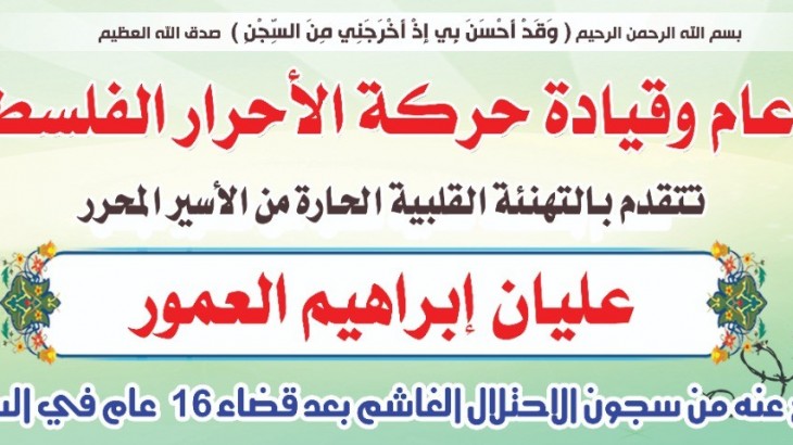حركة الأحرار الفلسطينية - قيادة إقليم خان يونس تزور الأسير المحرر عليان العمور للتهنئة بمناسبة خروجه من سجون الإحتلال بعد قضائه 16 عاماً وذلك اليوم الأحد الموافق 25/ 9 / 2022م