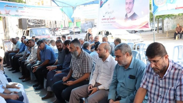 قيادة حركة الأحرار الفلسطينية على مستوى كافة أقاليمها التنظيمية تشارك في خيمة التضامن مع الأسير ناصر أبو حميد والتي تنظمها جمعية واعد أمام مقر الصليب الأحمر بغزة.