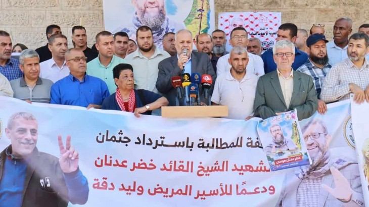 حركة الأحرار تشارك بحضور الوقفة المُطالبة باسترداد جثمان الشهيد القائد (خضر عدنان) وجثامين الشهداء المحتجزة لدى الاحتلال الصهيوني