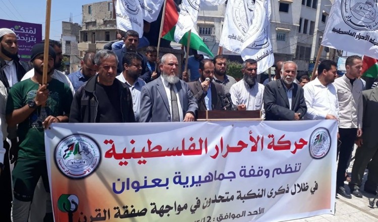 حركة الأحرار الفلسطينية- إقليم خانيونس وقفة جماهيرية بعنوان(في ظِلال ذكرى النكبة متحدون في مواجهة صفقة القرن) 2019/05/12