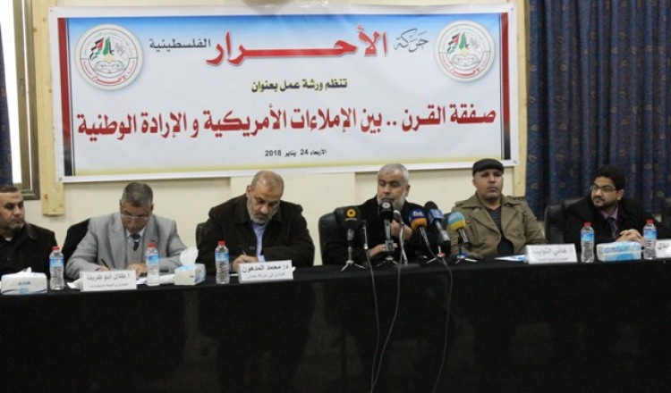 بالصور .. حركة الأحرار الفلسطينية تنظم ورشة عمل بعنوان صفقة القرن بين اللإملاءات الأمريكية والارادة الوطنية 2018/01/24