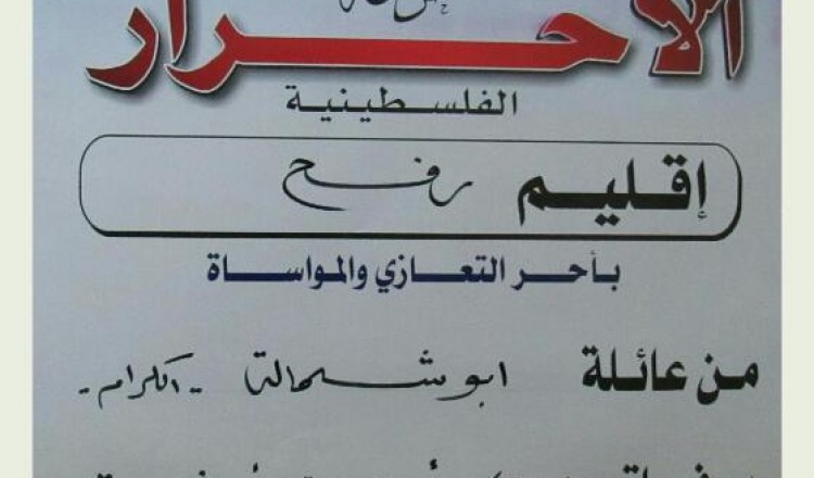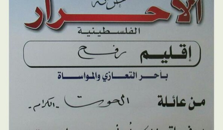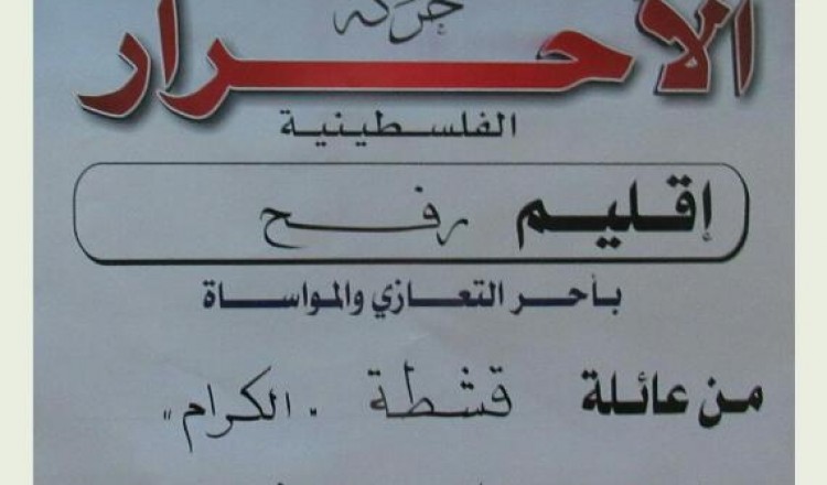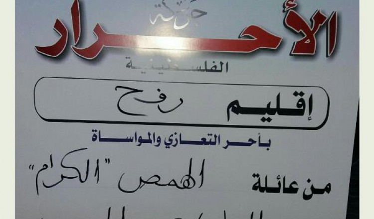 قدم قيادة حركة الأحرار إقليم رفح ومجلس منطقة الوسط واجب العزاء لآل الهمص بوفاة فقيدهم العقيد أحمد الهمص أبو محمود 2018/02/07