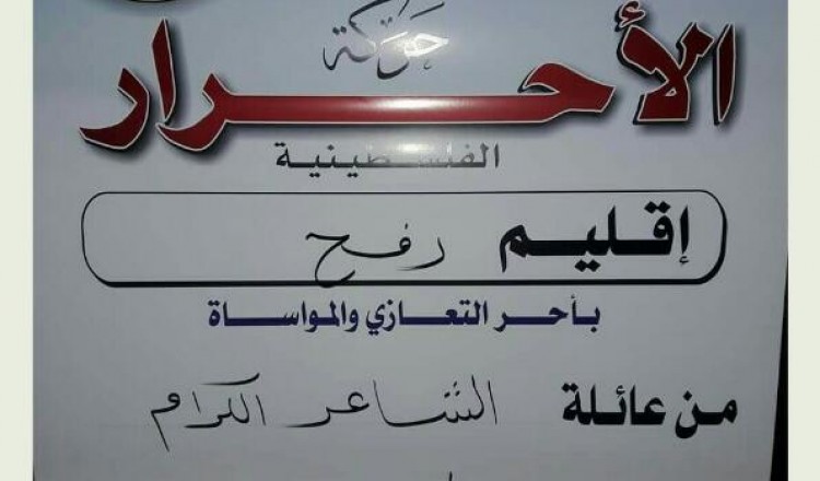 قيادة حركة الأحرار إقليم رفح تقدم التهاني والتبريكات لحركة المقاومة الإسلامية حماس بمناسبة النطلاقة ٣٠ 2017/12/21