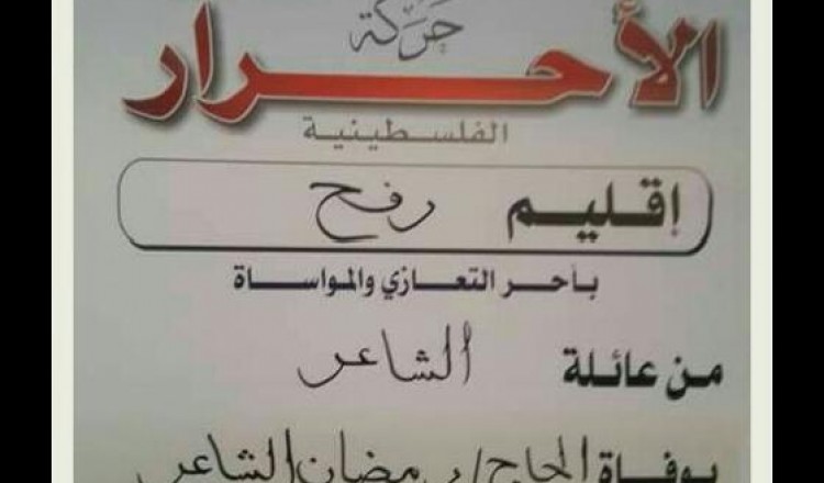 قدم مجلس المنطقة الشرقي في إقليم رفح واجب العزاء لآل الشاعر بوفاة فقيدهم الحاج رمضان الشاعر " ابو طلال " 2017/07/08