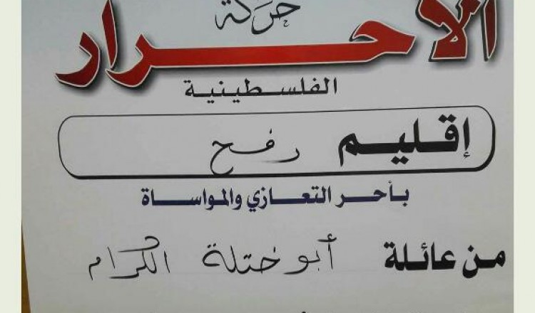 حركة الأحرار تكرم المتفوقين من طلاب الثانوية العامة من أبناء قياداتها التنظيمية على مستوى القطاع 2017/07/17