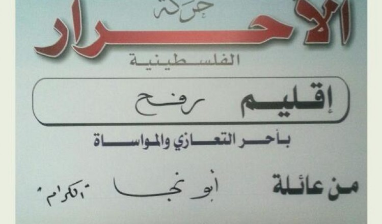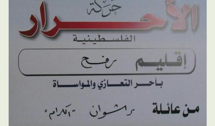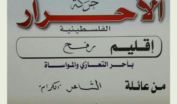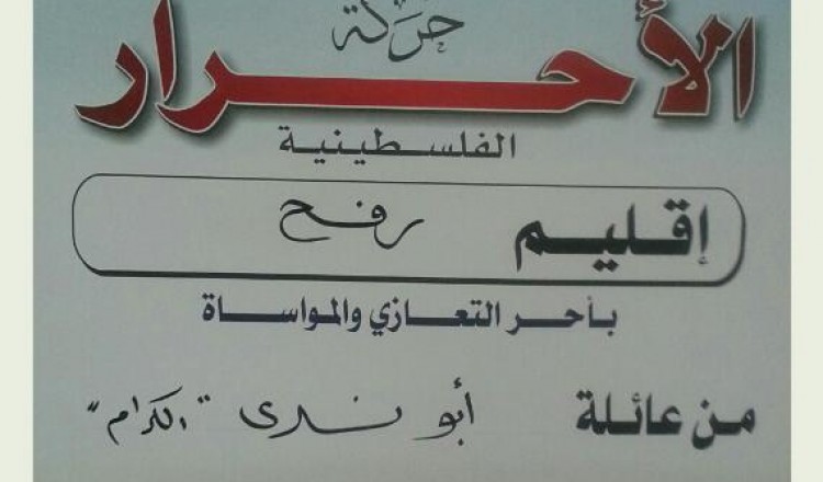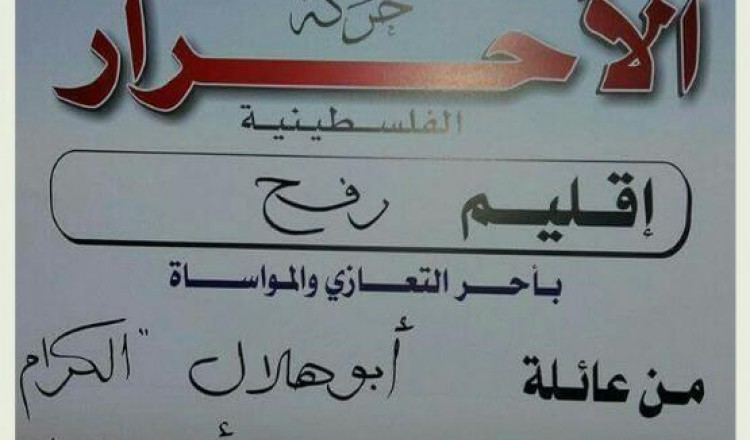 قيادة حركة الأحرار إقليم رفح ومجلس منطقة الوسط يقدمان واجب العزاء لآل أبو هلال بوفاة فقيدتهم الحاجة أنتصار أبو هلال 2017/06/21
