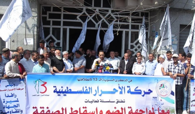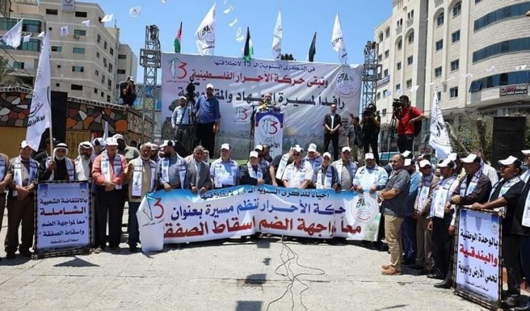 حركة الأحرار الفلسطينية إقليم الشمال تشارك في الوقفة الجماهيرية المنددة بخطة الضم الصهيونية التي دعت لها حركة المبادرة الوطنية الفلسطينية شمال غزة في الذكرى ال ١٨ لانطلاقتها تحت عنوان " في الذكرى ال ١٨ لانطلاقة حركة المبادرة الوطنية. بوحدتنا الوطنية
